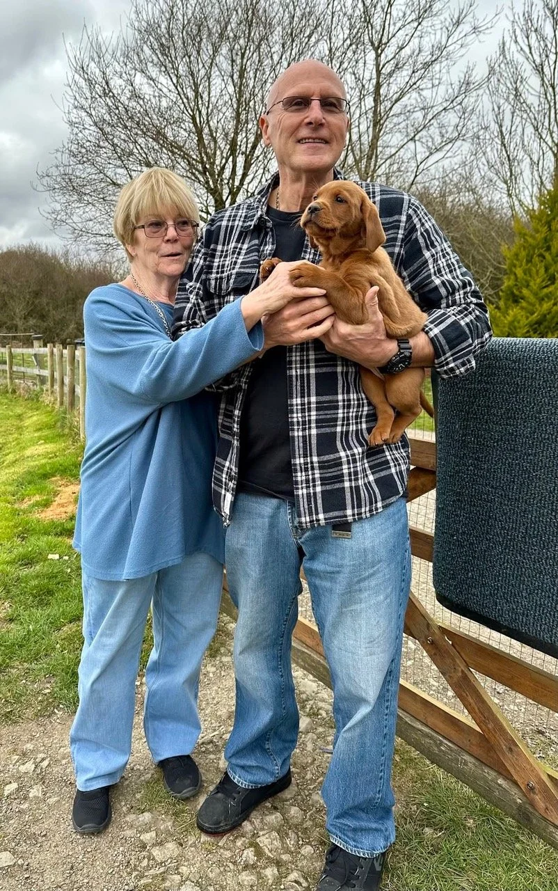 “We picked up our wonderful Rosie at the beginning of October 2024, one of the three girls in Morse and Bonnie’s litter. We are first time dog owners and had been looking forward to getting a family dog for a while. As newbies, we wanted the reassurance of a reputable breeder and, when a friend in our village recommended Henleywood, we immediately looked them up. We could see straight away from the website that we were going to be in good hands and, after speaking to Carol on the phone, it was obvious that the well-being of the puppies was paramount and that they would be given the best possible start in life.
